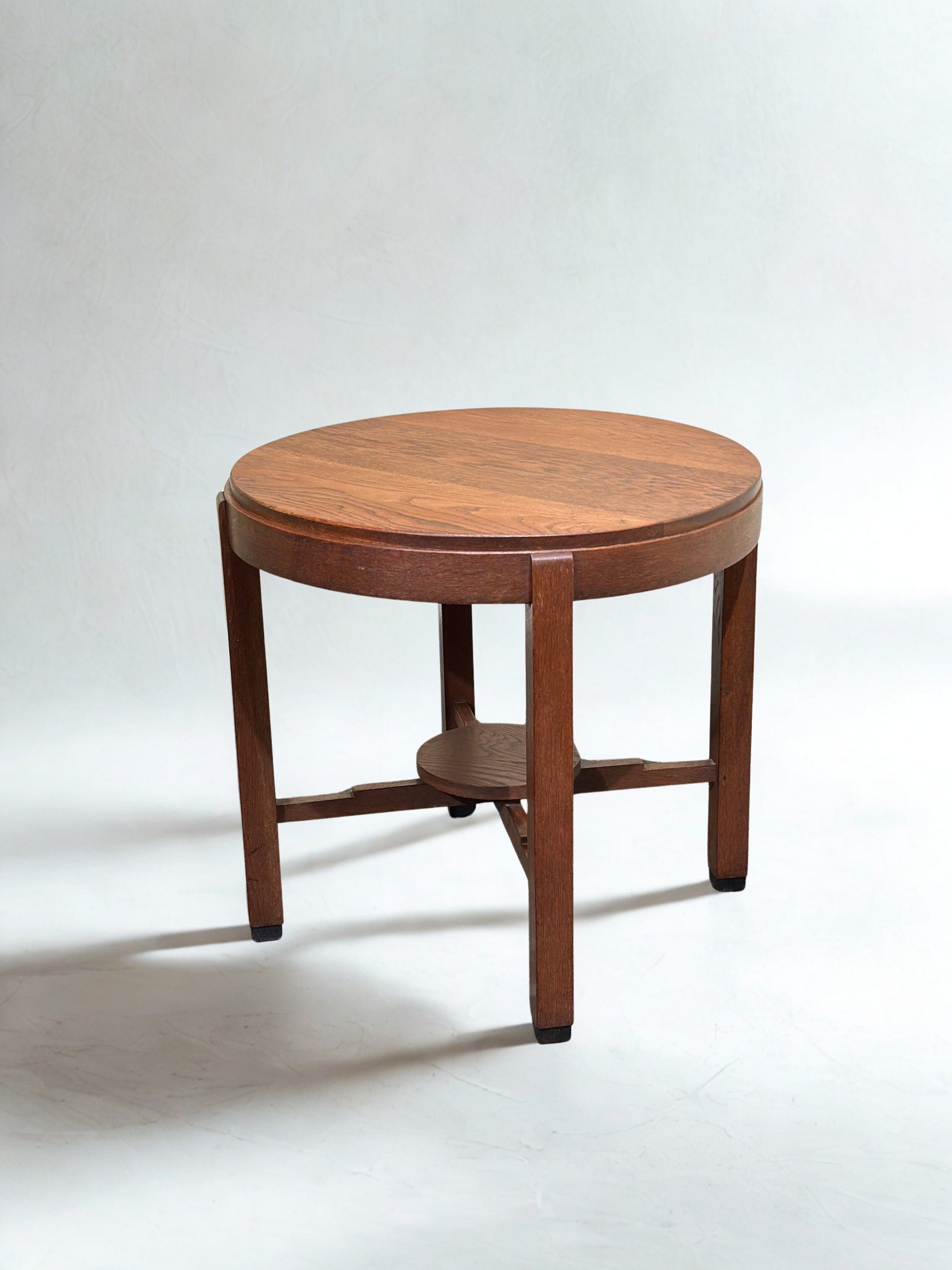 Elegant and well-proportioned Amsterdamse School round side table, dating from the 1920s. Characteristic Dutch design with a restrained architectural form and solid construction.